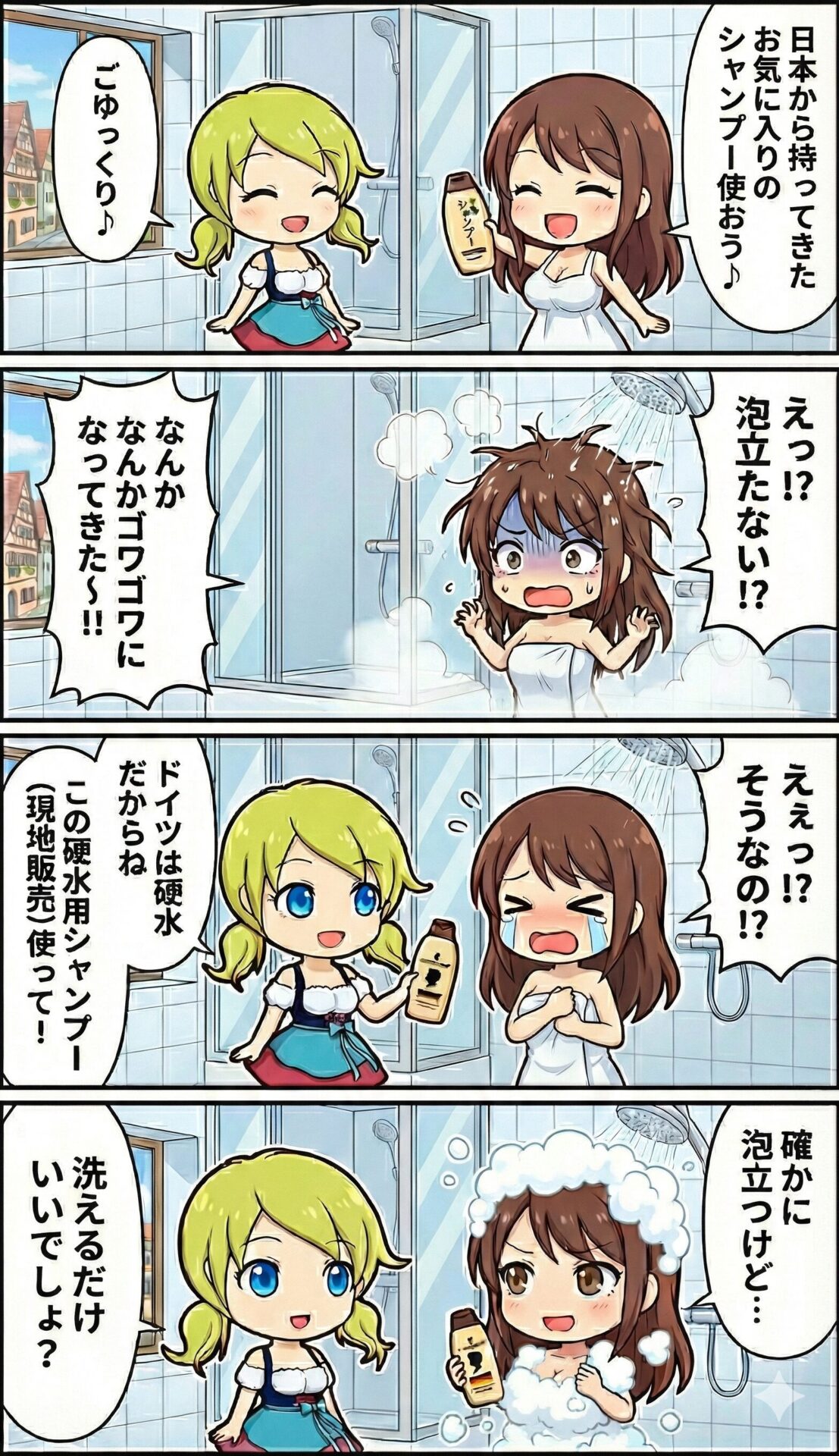 泡立たない日本のシャンプー 〜ドイツの硬水〜